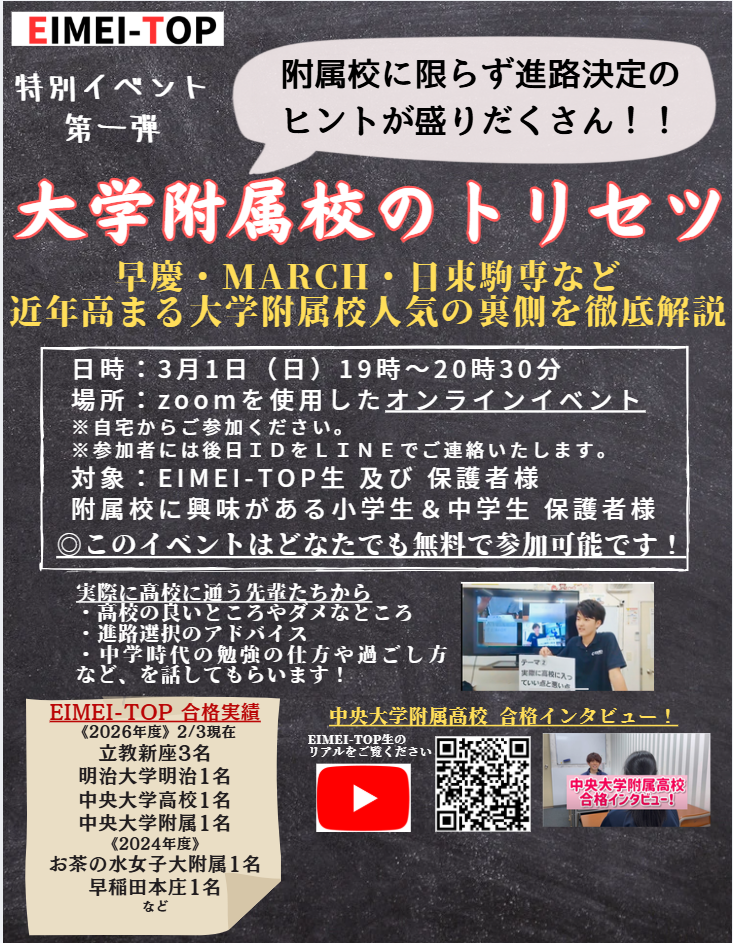 3/1(日)19:00~!「大学附属校のトリセツ2026」イベント開催決定!