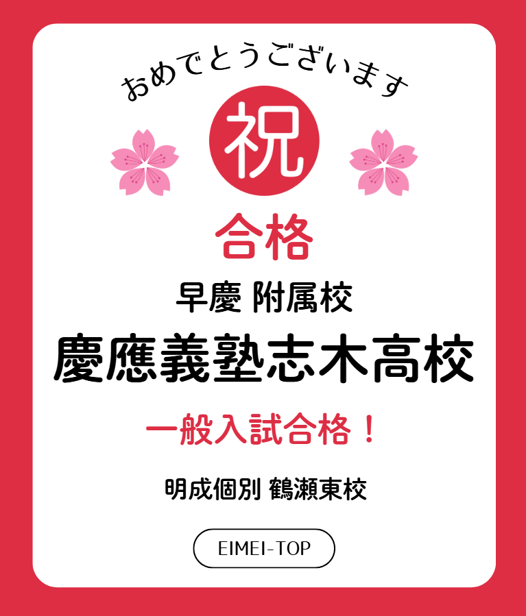EIMEI-TOPより、今年のTOP生の合格速報をお伝えします! 慶應義塾志木高等学校 一般入試合格!!!!!🌸 素晴らしい✨️よく頑張りました!!! 慶應義塾志木高校は、その […] -