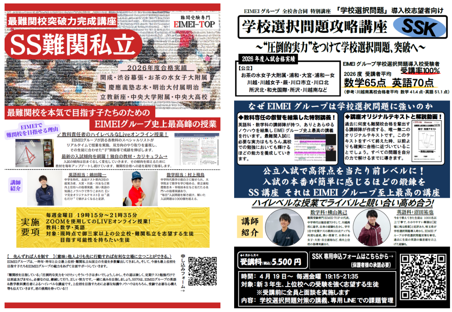EIMEI-TOPには、難関校合格に向けた特別講座《SS60》と《SS70》があります!