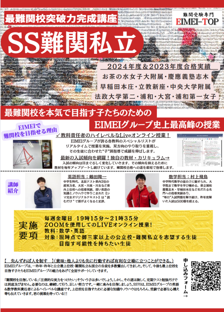 今までのSS70は、SS難関私立《Sクラス》としてスタートします!